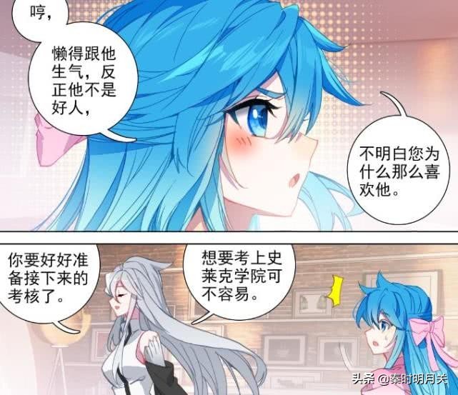 然而,我们细细看来,冻千秋对待的蓝轩宇的态度,并非像她跟古月娜所说的那样。双方的家长,第一次意识到他俩有故事发生,也同样是发生在天斗星。但古月娜与南澄夫妇在面对这件事上却有着截然不同的态度。南澄夫妇明显是一副看热闹不嫌事大,儿子能泡到冻千秋就是赚到的态度,而古月娜则是出于对蓝轩宇未来的考虑,把冻千秋转化为蓝轩宇奋斗的动力,希望两人都能同时考进史莱克学院。