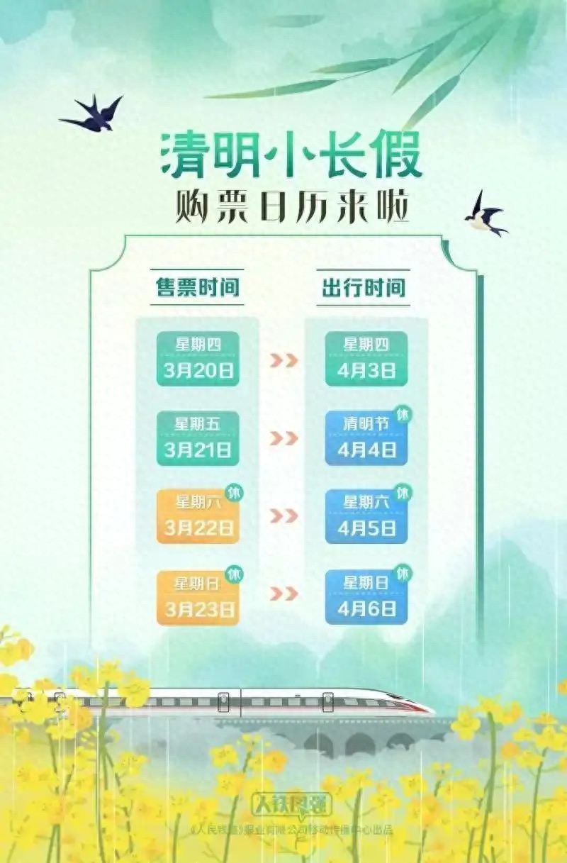 清明小长假火车票即将起售,购票日历出炉