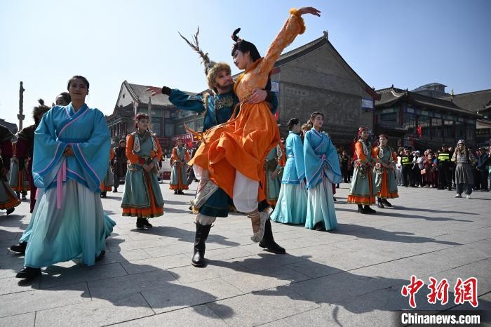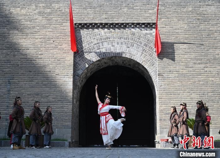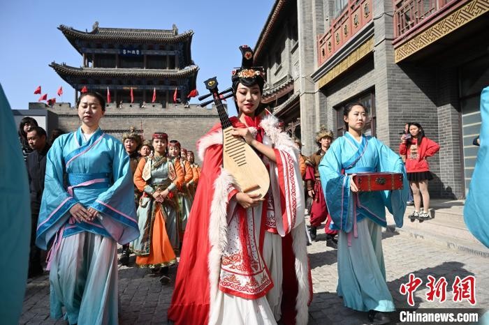 内蒙古呼和浩特市,演员舞蹈再现和亲场面。 中新网记者 刘文华 摄