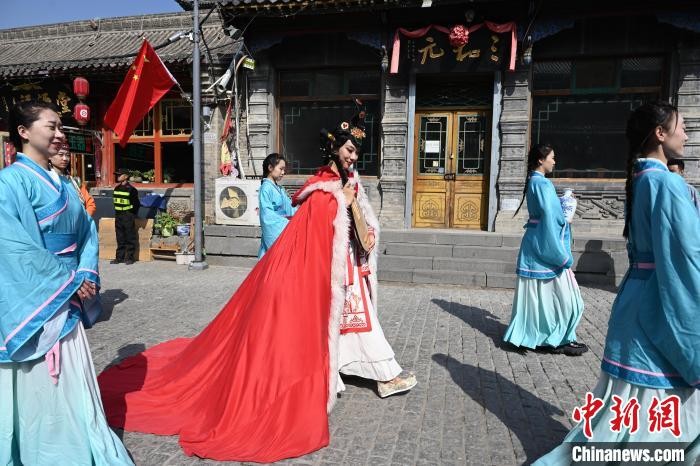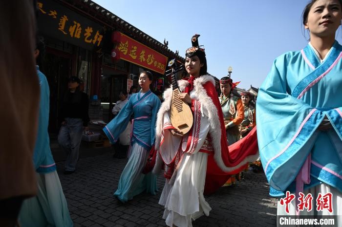 内蒙古呼和浩特市,“昭君”在塞上老街步行。 中新网记者 刘文华 摄