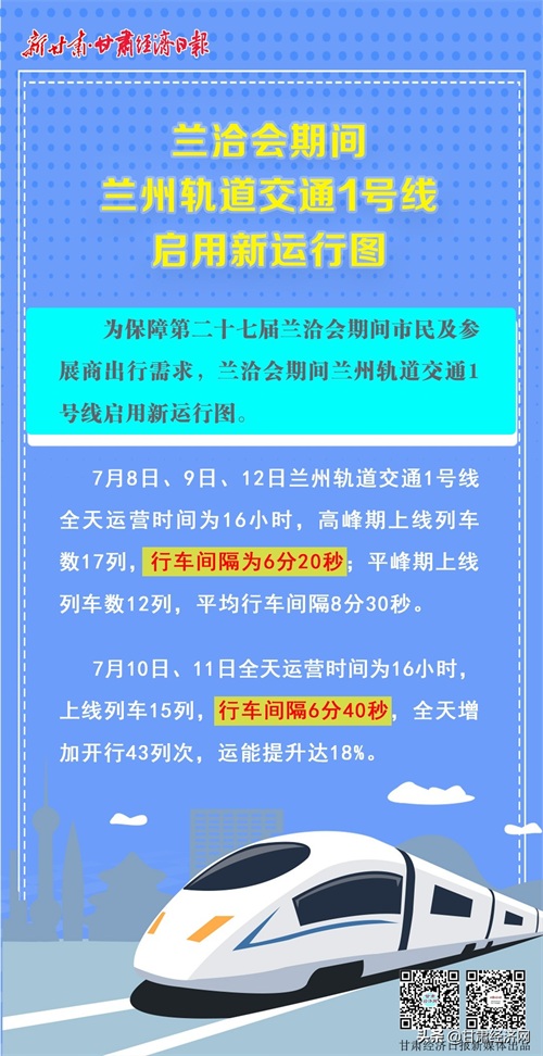 甘肃经济网兰州讯(新甘肃·甘肃经济日报记者李明娟)为保障第二十七届兰洽会期间市民及参展商出行需求,兰洽会期间兰州轨道交通1号线启用新运行图。
