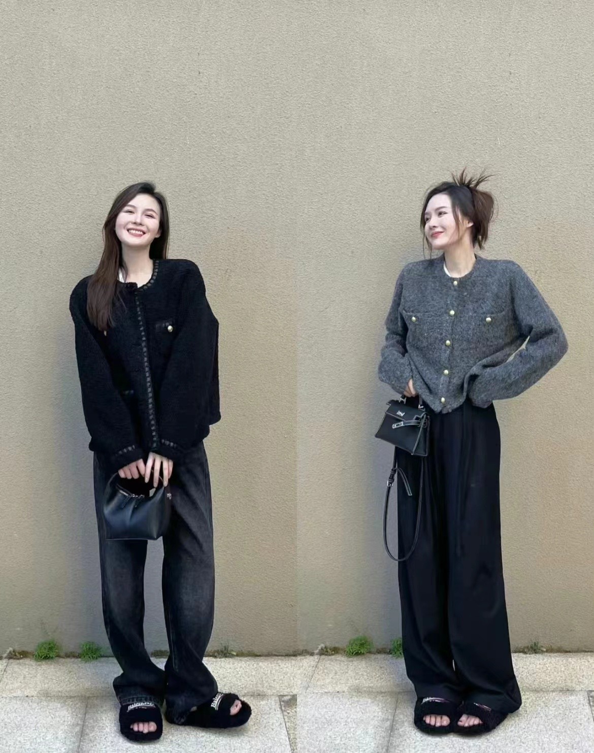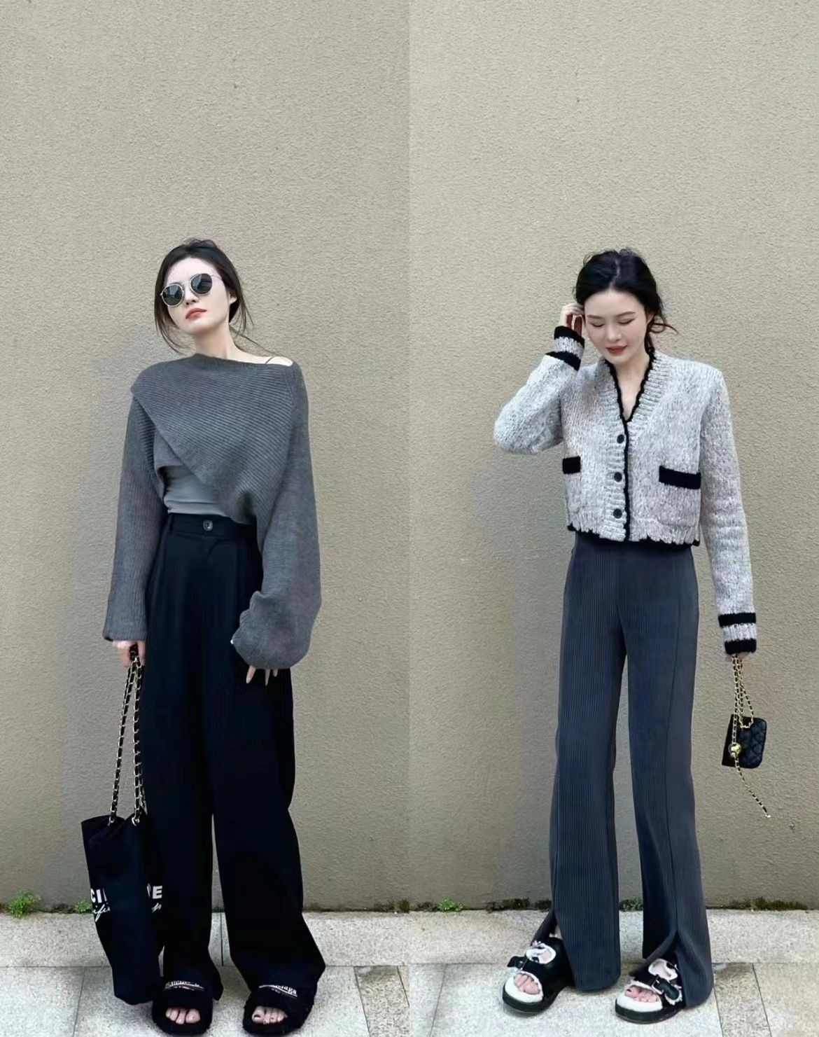 这样两种色彩之间非常的明确,配起来又特别有层次感,小香风风格的服装配上黑灰色更显高级。