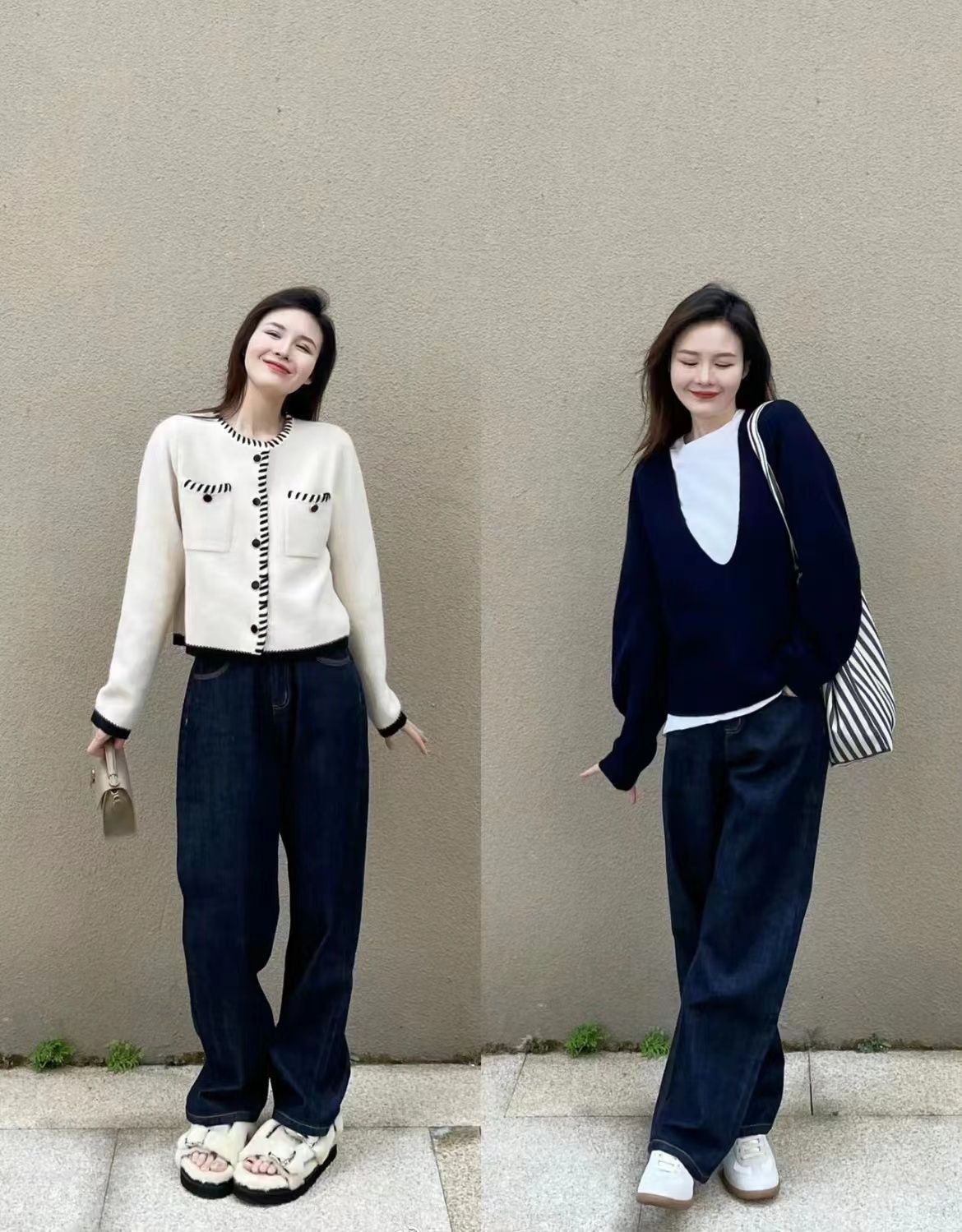 就像在这组当中,白色的短款小香风上衣搭配黑色的高腰裤,同样是打造出了一种街头名媛的视觉效果。也可以选择白色的打底,搭配黑色的毛衣,呈现出慵懒风格,白色作为点缀,整体造型既亮眼又高级。