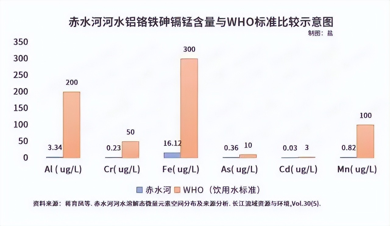 直到今天,赤水河仍然是长江上游唯一没有修建水电站的支流。2021年地球化学与环境领域的学者调查中,数据显示,赤水河拥有百倍优于WHO标准的水质。
