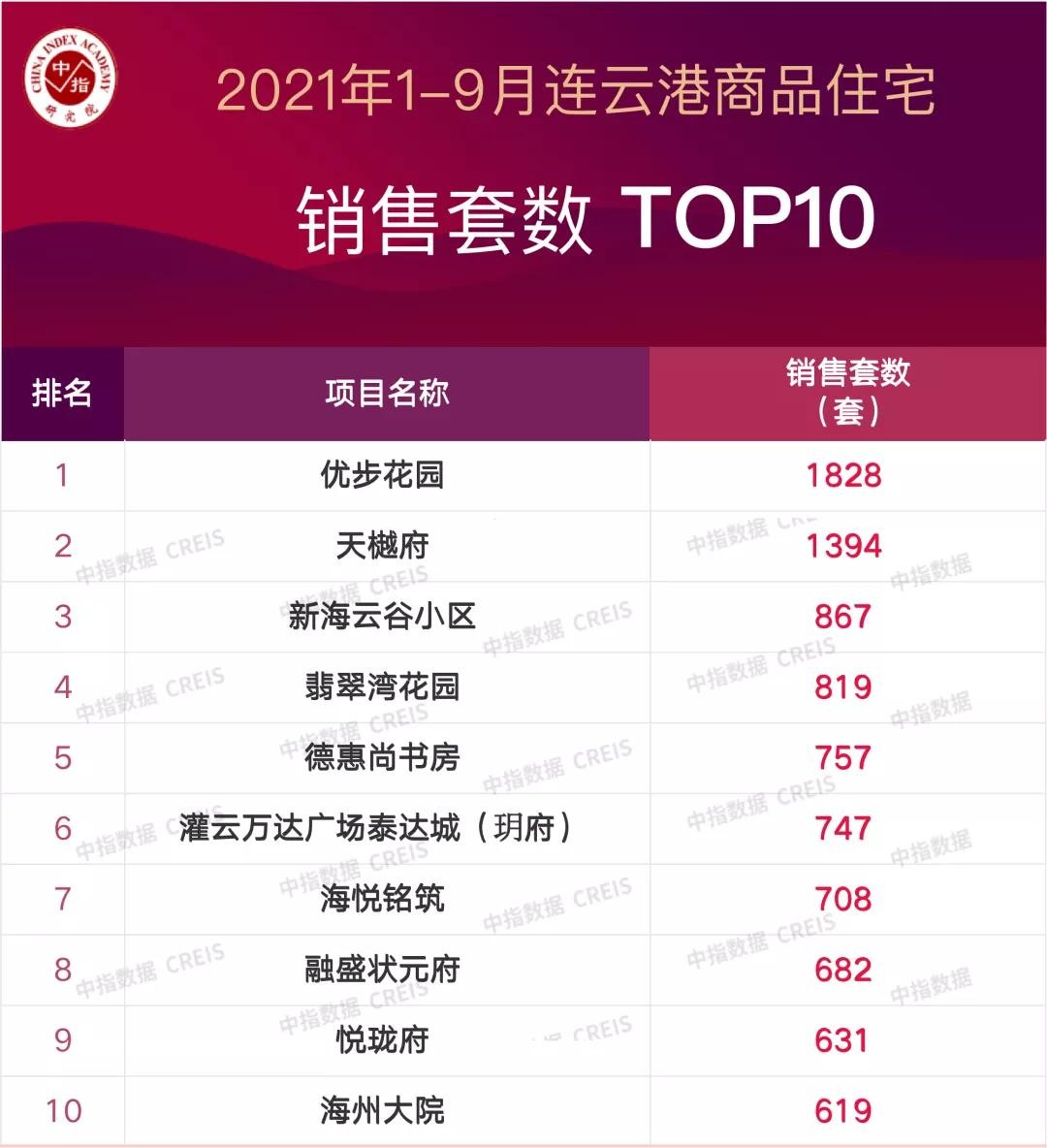 2021年1-9月连云港商品住址销售套数TOP10