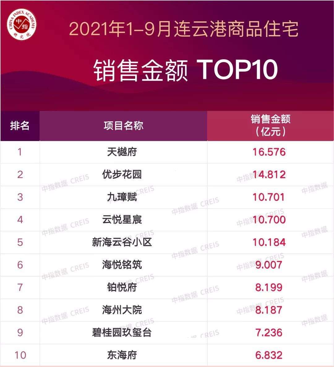 2021年1-9月连云港商品住宅销售金额TOP10