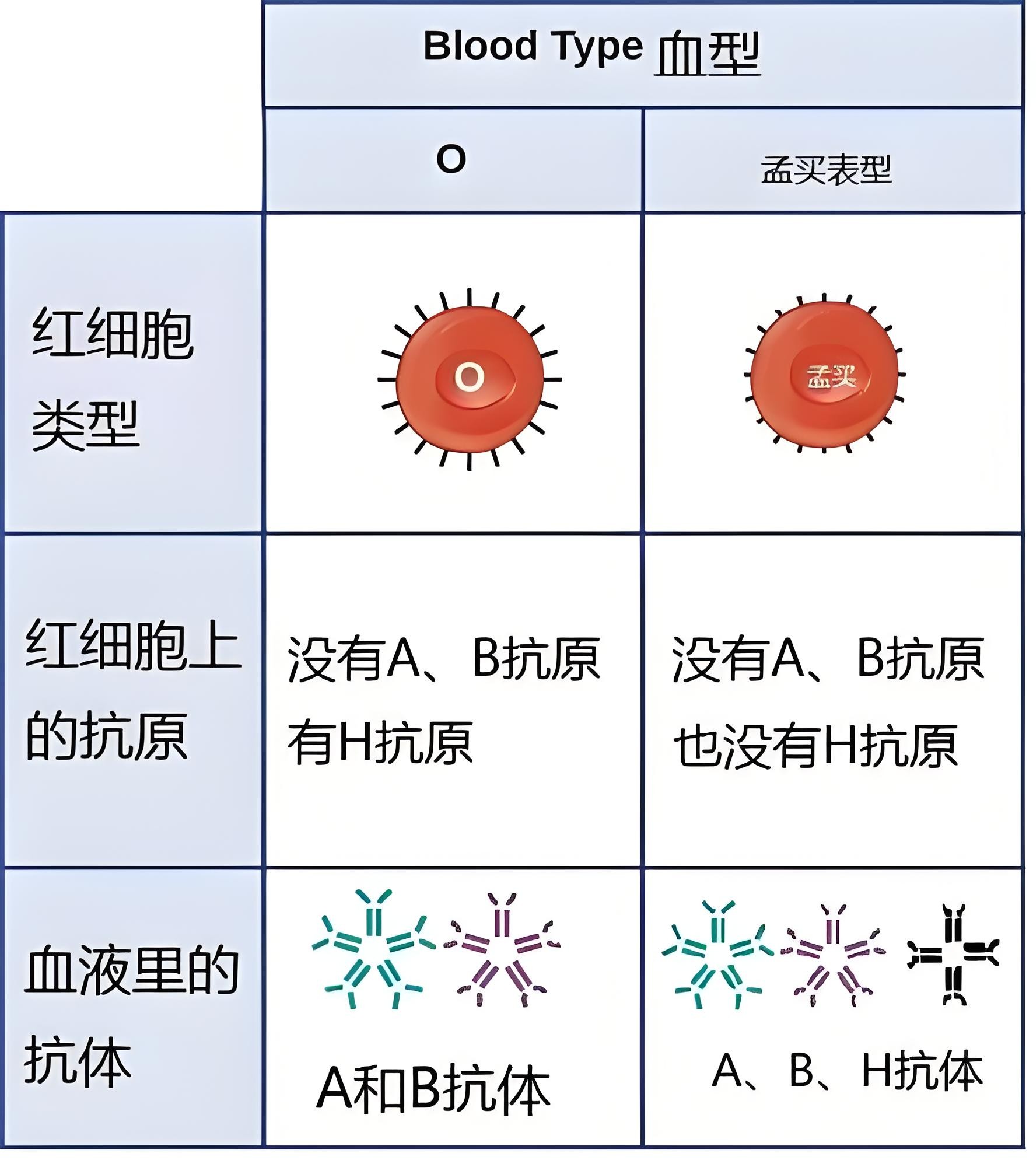 免疫反应相关结构:由于孟买血型红细胞表面缺乏 H 抗原,在免疫反应中,它可能会被免疫系统识别为外来异物。这使得孟买血型的个体在输血等医疗过程中面临特殊的风险,因为其体内可能会产生针对 H 抗原的抗体 。