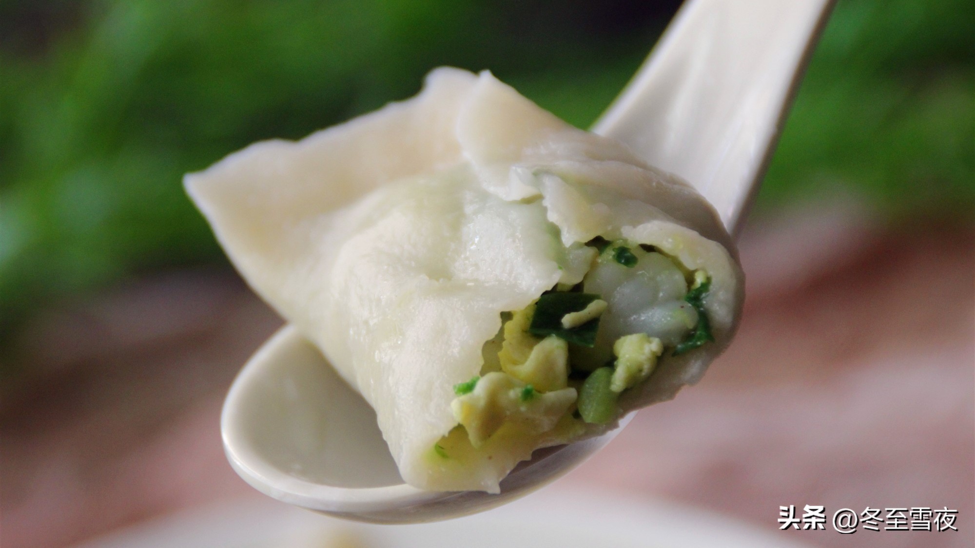 【韭菜鸡蛋虾仁馅饺子】所需材料:韭菜1斤、鸡蛋4-5个、速冻虾仁1斤、油盐适量、香油1汤匙、白胡椒粉1茶匙、料酒半汤匙、