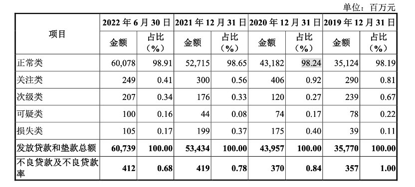 截至2022年6月30日,湖州银行位于湖州地区分支机构投放的贷款和垫款达480.59亿元,占比为79.12%,嘉兴地区和杭州地区贷款和垫款占比分别为15.14%和5.74%,区域集中度较高。这意味着当地经济环境的变化可能对银行的资产质量产生较大影响。
