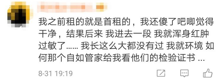 “我让他们来给我测甲醛,但他们却跟我说‘要测你自己掏钱测’,还说‘你就是测了我们也不认’。我现在已经在考虑要不要换房子了。宁可租老一点的房子,装修没那么好也不要紧,至少住着还比较安心。”一位网友这样表示。
