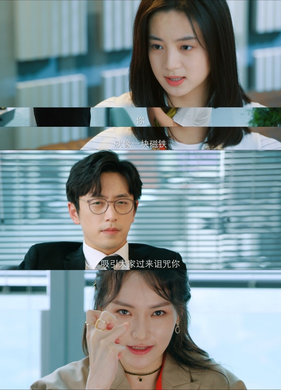 通过角色本身映射的动物信息,可以看出剧集中角色的配置极其接近现实有共鸣。白无缺(耿业庭 饰)的代表动物是鹦鹉,桀骜不羁少年感满满。于弋(曹征 饰)的代表动物是狐狸,偷奸耍滑性格一览无遗。代表常见的职场老油条,圆滑做人,圆滑做事;孔斐斐的代表动物(许馨文 饰)是孔雀,穿着打扮时尚十足,追求美丽,代表永远光鲜靓丽的职场丽人;Steve(孔连顺 饰)的代表动物是小熊,表情生动尽显憨态;林智英(赵昕 饰)的代表动物是袋鼠,性情温柔散发出母性光辉,代表职场女性在生活中兼有的母亲身份;郭小莱(孙艺宁 饰)的代表动物是寄居蟹,迫于生计寄居在闺蜜李路多家里;这些动物可以是老油条、爱美达人、二胎妈妈、刚步入社会的职场新人等等,让观众很容易就能在身边人之间对号入座生成共鸣,从而加深观剧代入感,让你也成为剧中人。而贴合现实的剧集人物配置,也展现出很多真实社会话题,包括对上下级关系的探讨,二胎妈妈的职场生存现状,对职场小白的建议等等。与众不同的海报风格,让人期待满满。