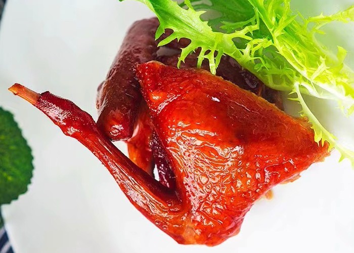 脆皮乳鸽,脆皮乳鸽最早是出于粤菜红烧乳鸽,但是又区别于红烧,说红烧只是卤而已,是熟成后上脆皮水后再炸,初步具有皮脆肉嫩和美味多汁的特点。