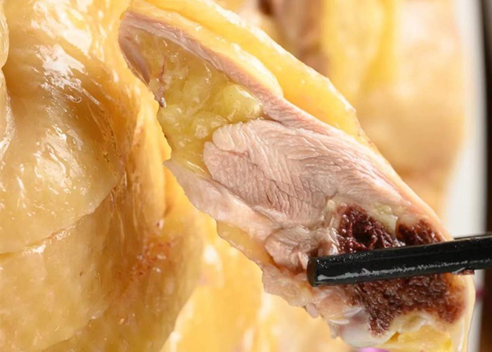 多汁肉嫩的鸡肉,肉汁被锁在肉里,超有嚼劲。有韧劲的皮肉,让口感紧实又鲜甜,鸡皮又弹又滑!