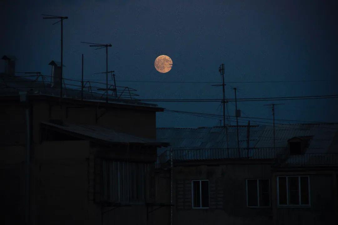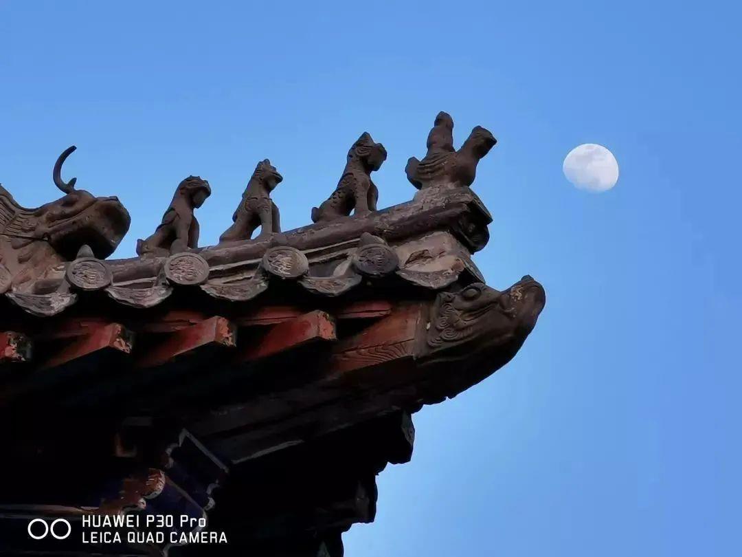 拍摄的最佳时刻,是月亮刚刚升起的时候,这时月亮的亮度较低光比较小,天空也还残余色彩