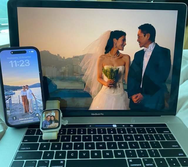 曝光的画面中,李嘉欣将常用的三样网络工具聚在一起,每一种工具的页面上都有她和许晋亨的亲密合照,尤其是电脑上的那张结婚照,想来应该有14年的时间。两人柔情对视的模样,真的让人羡慕。
