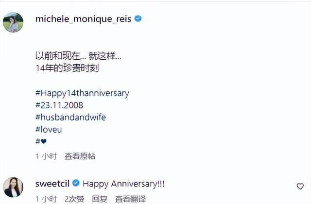 11月23号,李嘉欣于社交网上大方秀恩爱,并留言说道:以前和现在……就这样……14年的珍贵时刻。