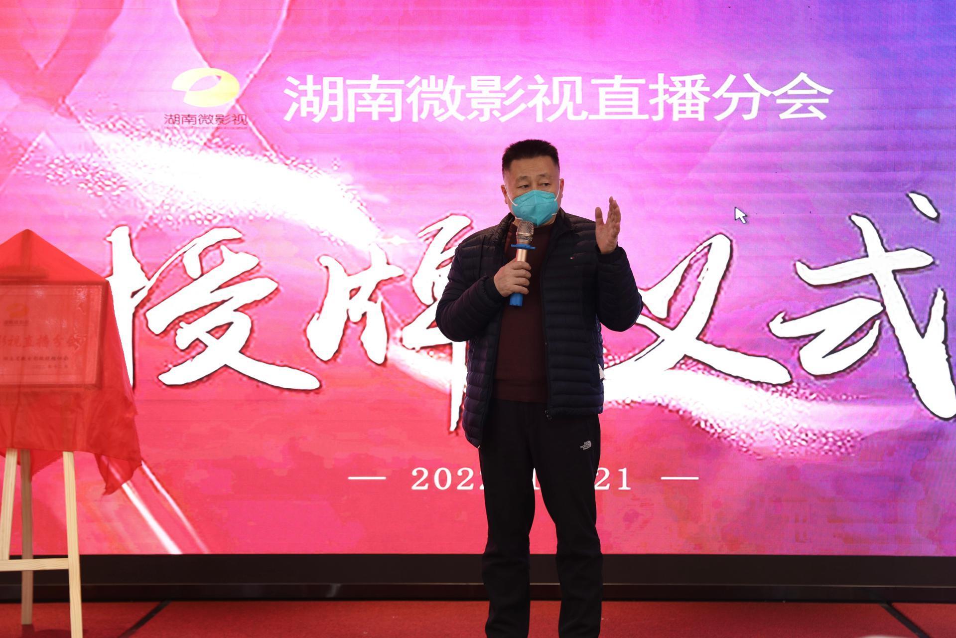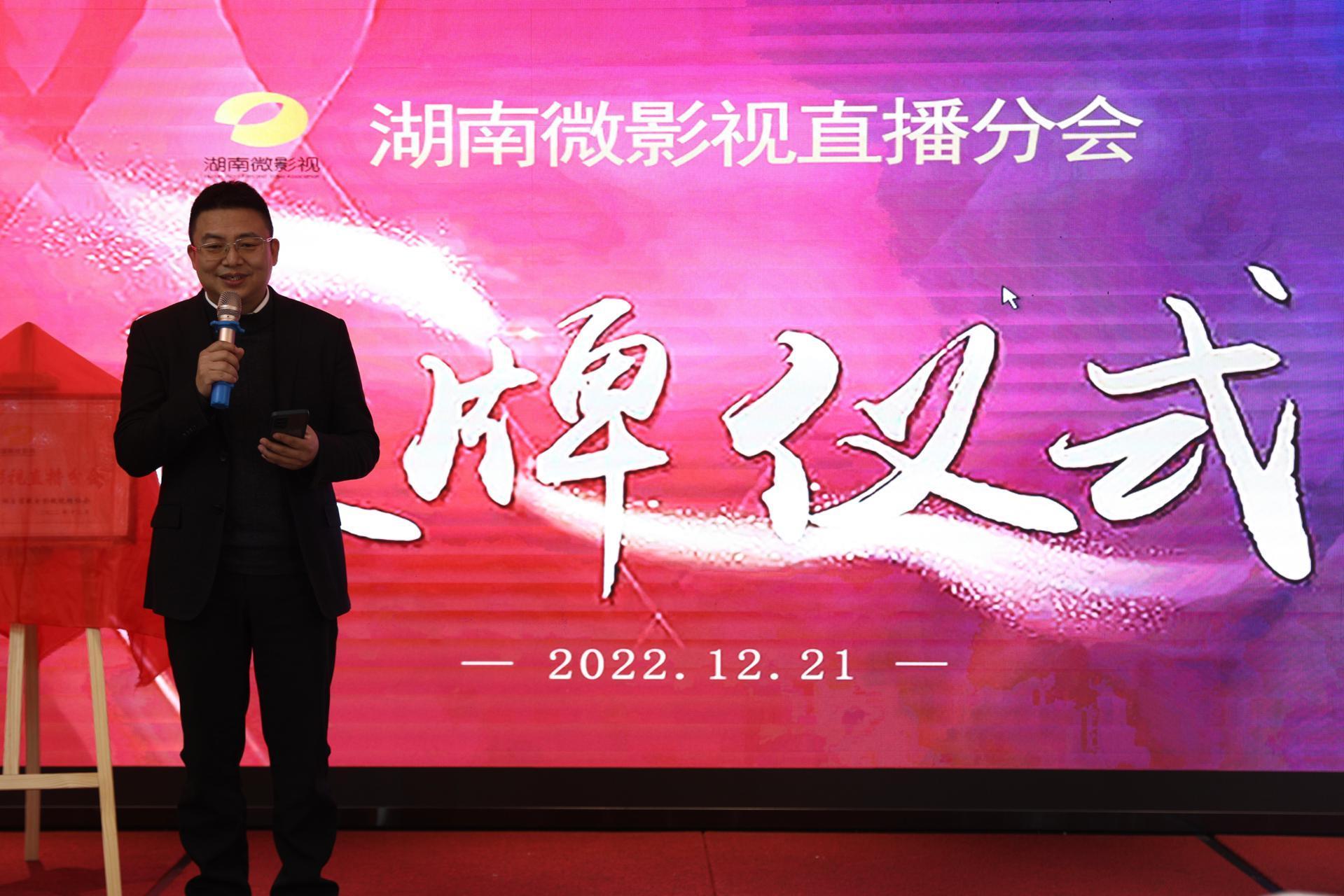 △ 湖南微影视直播分会副主委廖佰斌主持揭牌仪式。