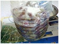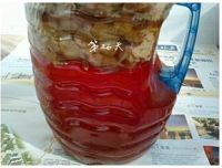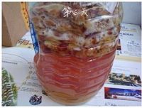14.一个月后,可以把上面的葡萄皮和籽等过滤出来,过滤时所用器具也都要消毒。 时间越长,酒味儿越浓。