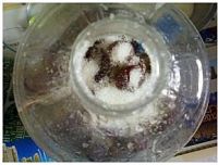 7.把葡萄捏烂,放到容器内。