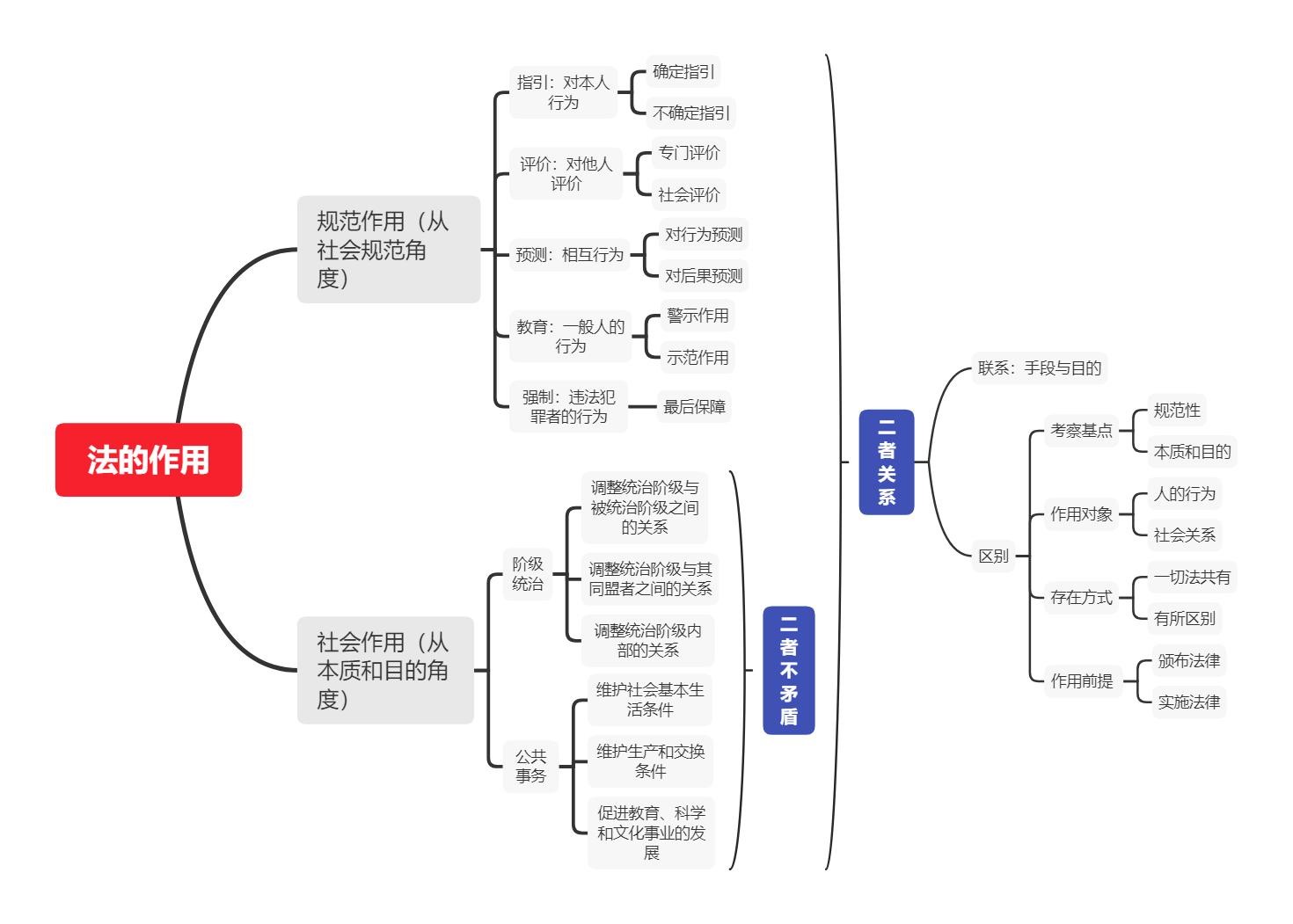 5. 法的规范作用和社会作用在考察基点、作用对象、存在方式以及发挥作用的前提等方面存在着一定的差别。