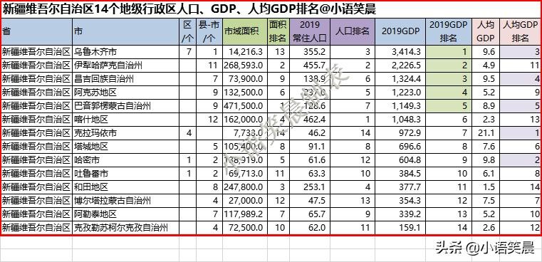 一、新疆维吾尔自治区14个地级行政区人口、GDP、人均GDP排名(详见下表)