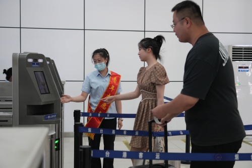 随着人群流向,记者来到了售票窗口,服务员程珊珊维持着售票秩序的同时,向过往旅客介绍着全面运行的电子票业务。7月1日起,全面推行电子客票,凡是线上购票的旅客,均可凭身份证刷卡检票登船。“电子票很便捷,节约排队取票的时间,提升旅客的出行体验。”她说。忙到飞起的售票窗口,售票员正与旅客核对乘船时间、舱位,随着键盘敲击的哒哒声,行云流水间完成了购票的整套流程。购票完毕后,旅客自验票闸机刷证进站,20秒便完成了人脸识别。全线运行的电子票业务不禁让旅客竖起了大拇指。