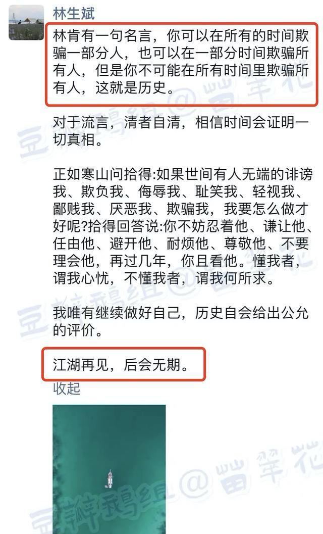 林生斌被骂3天后,朋友圈回复疑似长文再见江湖,不会再有约会了