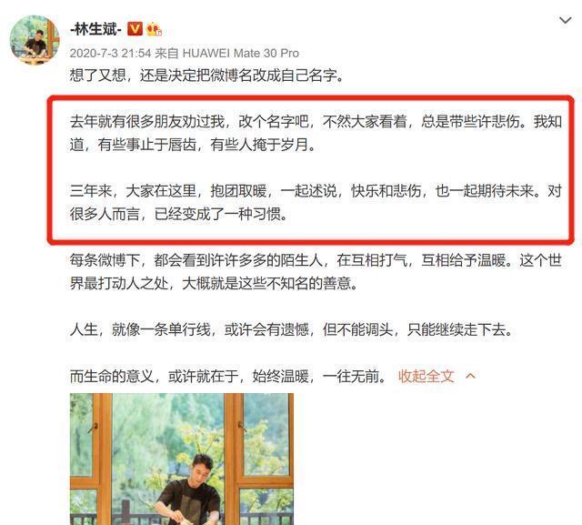 林生斌官宣后,他的妹夫(已故妻子的弟弟)在微博上发了一条消息。