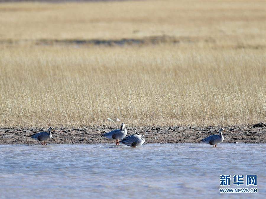 10月30日,在青海省果洛藏族自治州玛多县境内,斑头雁在水中休憩。 新华社记者 张龙 摄
