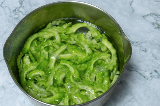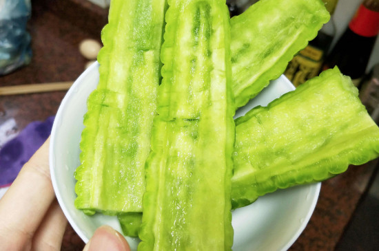 此外在切苦瓜的时候,可以将苦瓜对半切开,再把苦瓜里面白色的瓢去掉,看到苦瓜内部一层白色的膜后,再将白色的膜刮掉,苦瓜的苦味也可以大大减少。