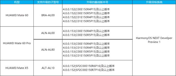 首批共三款机型支持,分别是 Mate 60、Mate 60 Pro、Mate X5。