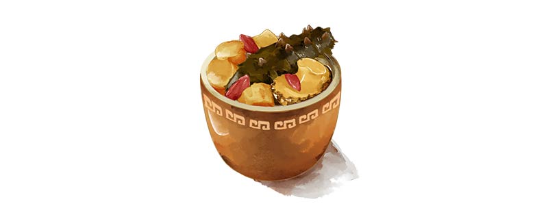 佛跳墙这道菜一般选用鲍鱼、鱼唇、海参、蹄筋、墨鱼、杏鲍菇、瑶柱、鹌鹑蛋等汇聚到一起,加入福建的老酒以及高汤,再用文火煨制而成的。