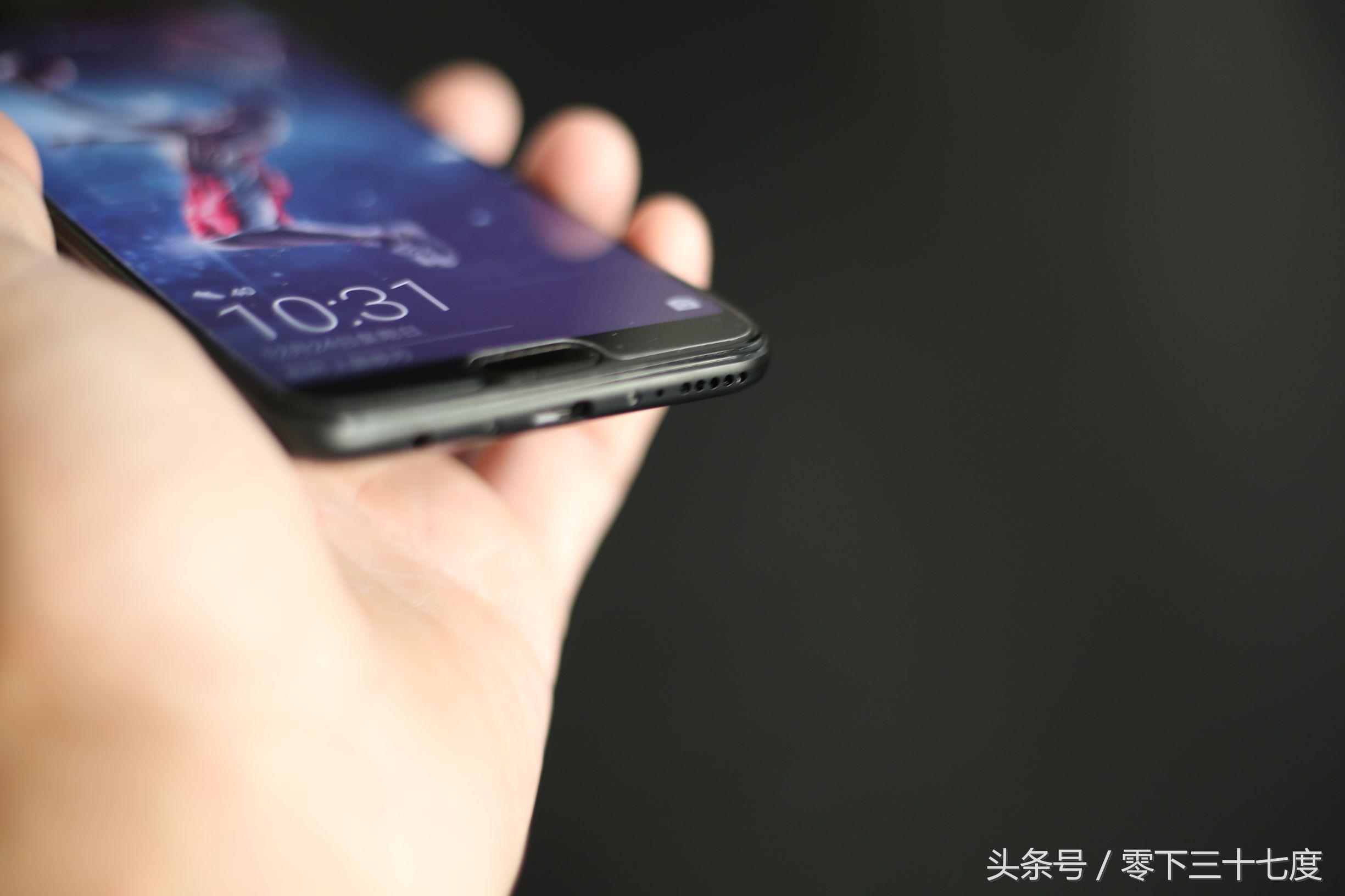 荣耀V10屏幕为圆角设计,这样的设计效果看起来非常圆润,线条流畅不到7mm的机身厚度带来非常好的握持手感。手机的顶部则集成了呼吸灯、摄像头、、传感器和听筒,并配置了红外传感器,可以支持对家电的遥控。底部是耳机接口、话筒以及充电接口,充电接口采用了USB Type-C接口,充电标准达到了5V/4.5A,支持华为的超级快充,使用起来非常方便快捷。