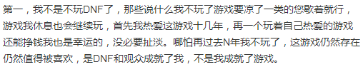 虽然话是这么说没错,但DNF玩家不断流失也是一个不争的事实,而随着这则微博的发布,早有退意的粉丝们估计也会纷纷脱坑。遥想6070版本,DNF的装备数值普遍平衡还很低,这也导致高级地图极难通关,那时大家考虑的都是如何更高效地过图,这其中就有一批热衷竞速的技术流玩家因此出道,旭旭宝宝也在其列。然而如今的毒奶粉却因为装备数值的日益浮夸,导致实操党没落,旭旭宝宝的直播间也早已变成了玩家们去看土豪砸钱增幅的地方。