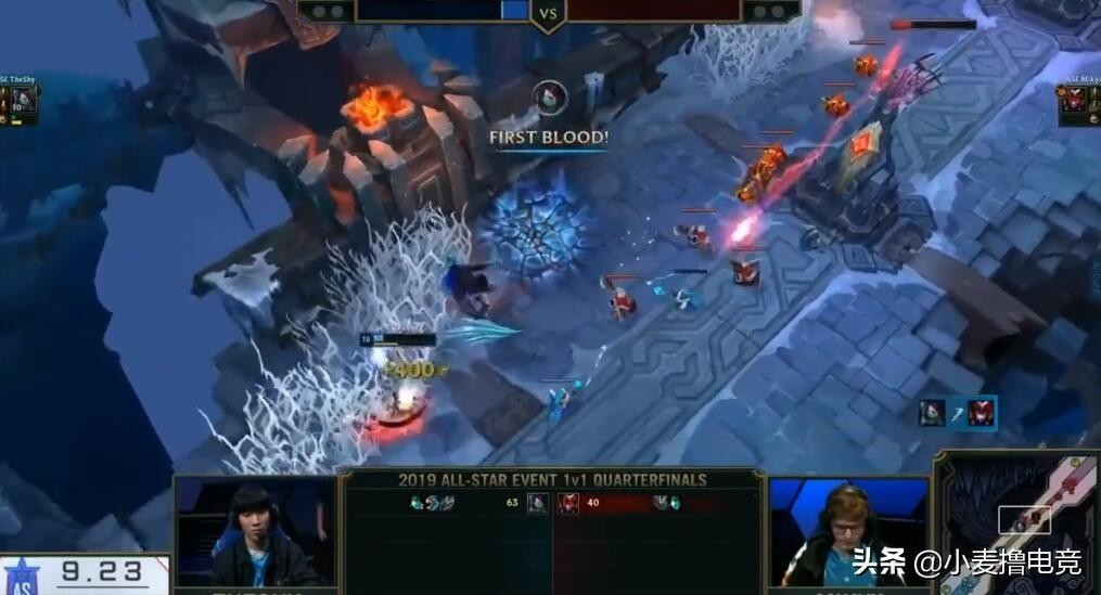 在率先进行的一场8进4的solo赛中,Theshy率先登场迎战Miykx,如果从两人打得位置来看,这场比赛Shy哥还是占据一定优势的,毕竟Mikyx是辅助出身的选手。在这场对决中,Theshy直接掏出了自己的阿卡丽,基本上看到这个英雄不少人都觉得Shy哥这局稳了,在今年世界赛中Shy哥的阿卡丽多次上演七进七出的表现。而Mikyx这边则选择了龙女这个英雄。