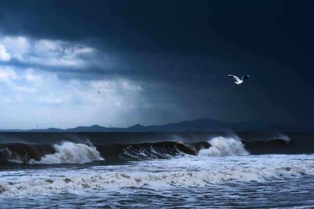 在台风中心,由于空气下沉,形成一个无风的台风眼。这个区域通常晴朗无云,风力很小,甚至可以达到风平浪静的状态。但周围的旋转气流却能产生巨大的破坏力。