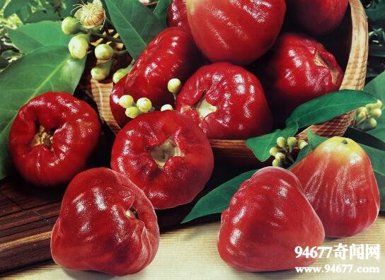 莲雾果实色泽鲜艳,外形长得十分像红辣椒,但是味道却是十分的甜美。莲雾被誉为是世界十大奇异水果之一,据说经常吃莲雾对于人体的身体健康有着很大的作用。
