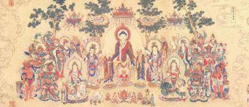 在龙树时代所流行的净土往生观,大体有三种:第一、以弥勒菩萨为主,往生于兜率天上;第二、以阿□佛为主,往生于东方妙喜国土;第三、以阿弥陀佛为主,往生于西方极乐净土。