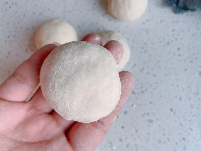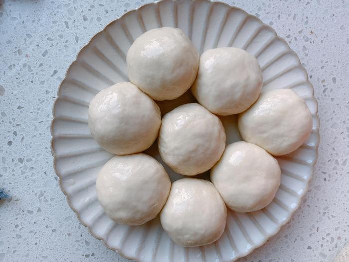 3、准备一个容器,容器里面刷上食用油防粘,然后把揉圆的面剂子放进去,在面剂子表面也刷上一层食用油,然后在表面盖上一层保鲜膜或者是套个保鲜袋,放在一边饧发1小时,饧发时间一定要足够,时间足够了下面会更加好操作;