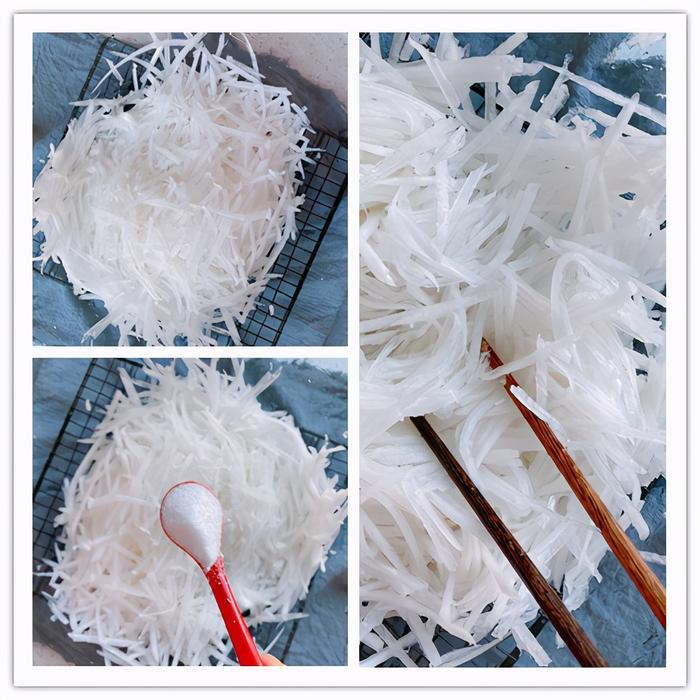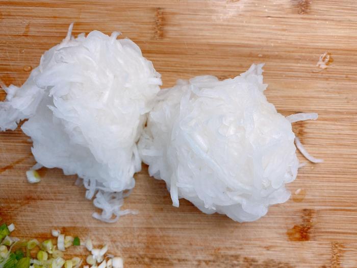 6、萝卜杀出水分之后,把萝卜中的水分挤干;