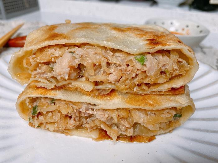12、这样做的萝卜馅饼皮薄馅多,不用烫面也不用发面,皮薄如纸,非常适合不会包馅饼的朋友,而且肉馅经过打水,煎熟之后还能爆汁;