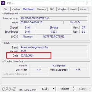 打开CPU-Z(有中文版,可以下载中文版),点击“Mainboard”,可以看到BIOS一栏中“Date”一栏,该栏表示主板BIOS更新日期。