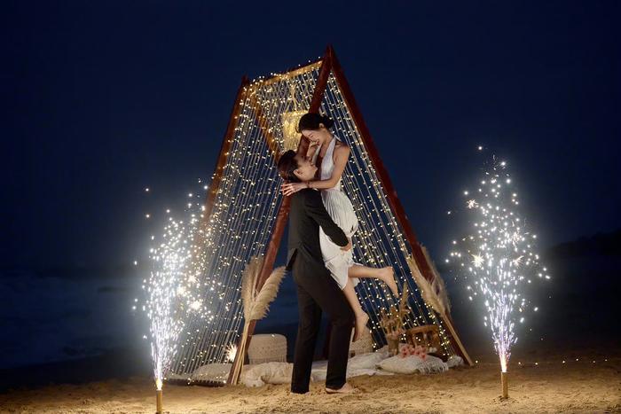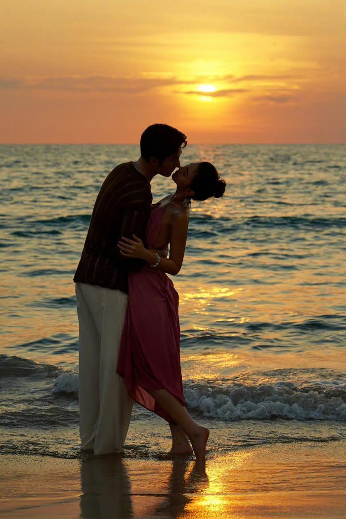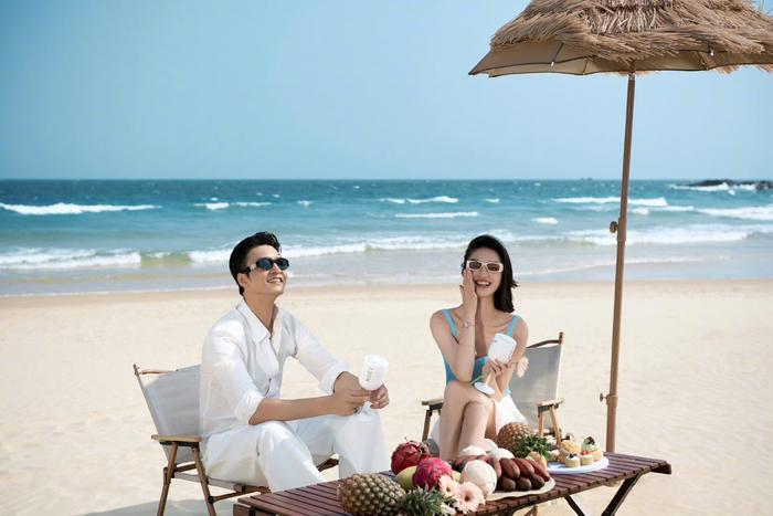 夏日激情,浪漫至极,在广阔而幽蓝的海水边,在金黄而松软的沙滩上,拥有完美身材和年轻面庞的新人,在夏日的热情海滩上享受美好的假日时光,这样的画面是不是分外撩人?