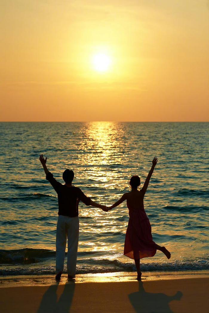 海边的日落尤其温柔,波光粼粼的海面吹过微风,踩在沙滩上,挽着心爱的人,在黄昏写上一封情书,载着落日的余晖和银河的浪漫,寄给你,寄给浪漫本身。一起看日落的人,比日落本身更浪漫。