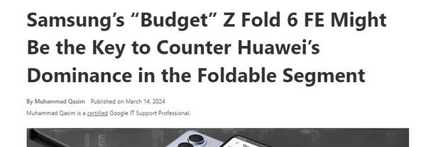 外媒曝光三星Z Fold 6 FE:它是对抗华为领导地位的关键