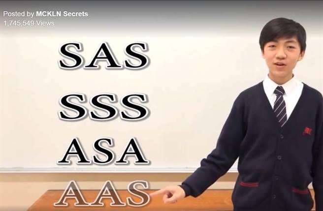 香港一中学改编德国老歌旋律,结合数学课题证明全等三角形,重复演唱「SAS、SSS、ASA、AAS」洗脑歌词,全长5分钟的影片中,场景从课堂、图书馆延伸到现场乐器伴奏,最后还找来大批学生在礼堂内合唱。