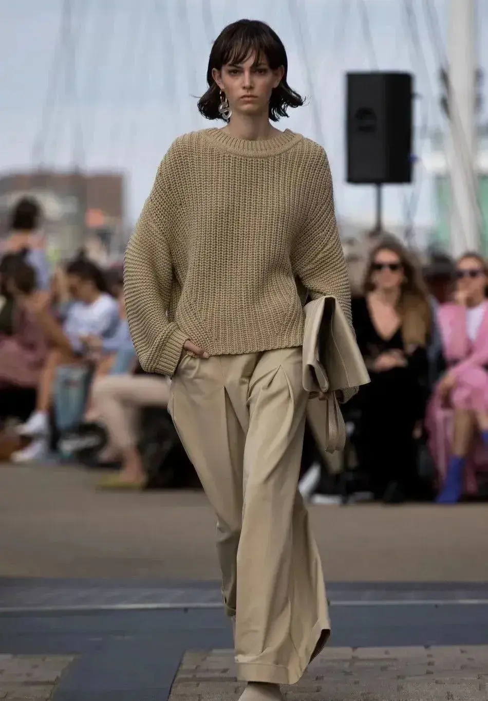 可盐可甜的奶茶色毛衣能轻松穿出各种风格。
