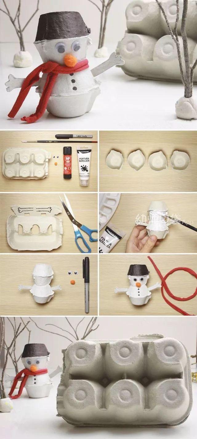 鸡蛋托就不必我多说了吧!怎么造作它都能变成一个小惊喜出现在我们的面前。正在盯着手机屏幕的你,快放下手机,一起做个鸡蛋托雪人吧~