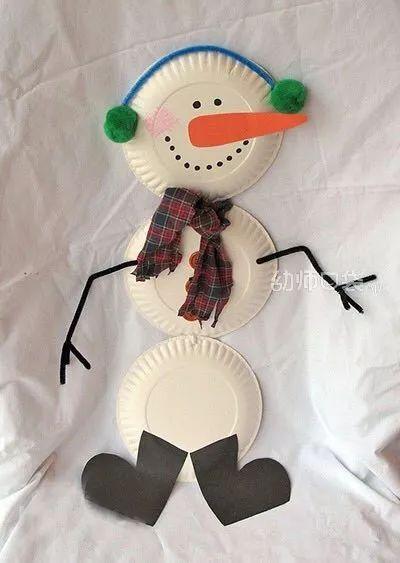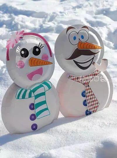 一个大纸盘、一个小纸盘也可以做出超可爱的雪人。