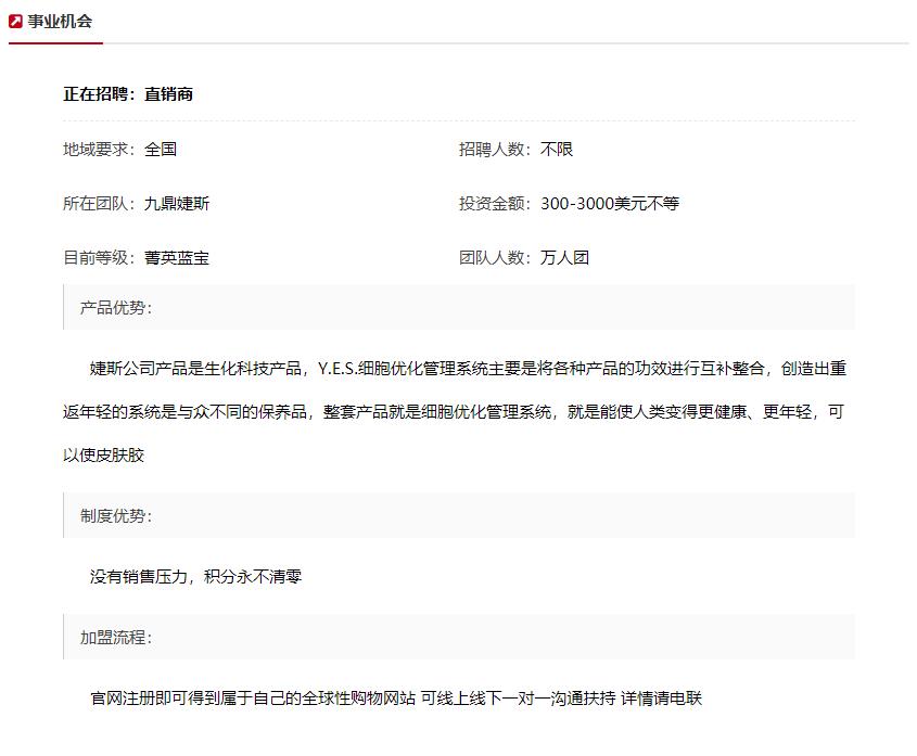 但有网友反馈,美商婕斯在大陆的加盟网址已经显示无法进入。因此,产品及模式均有较多风险的美商婕斯,涉及到它的投资行为就应该更加慎重。